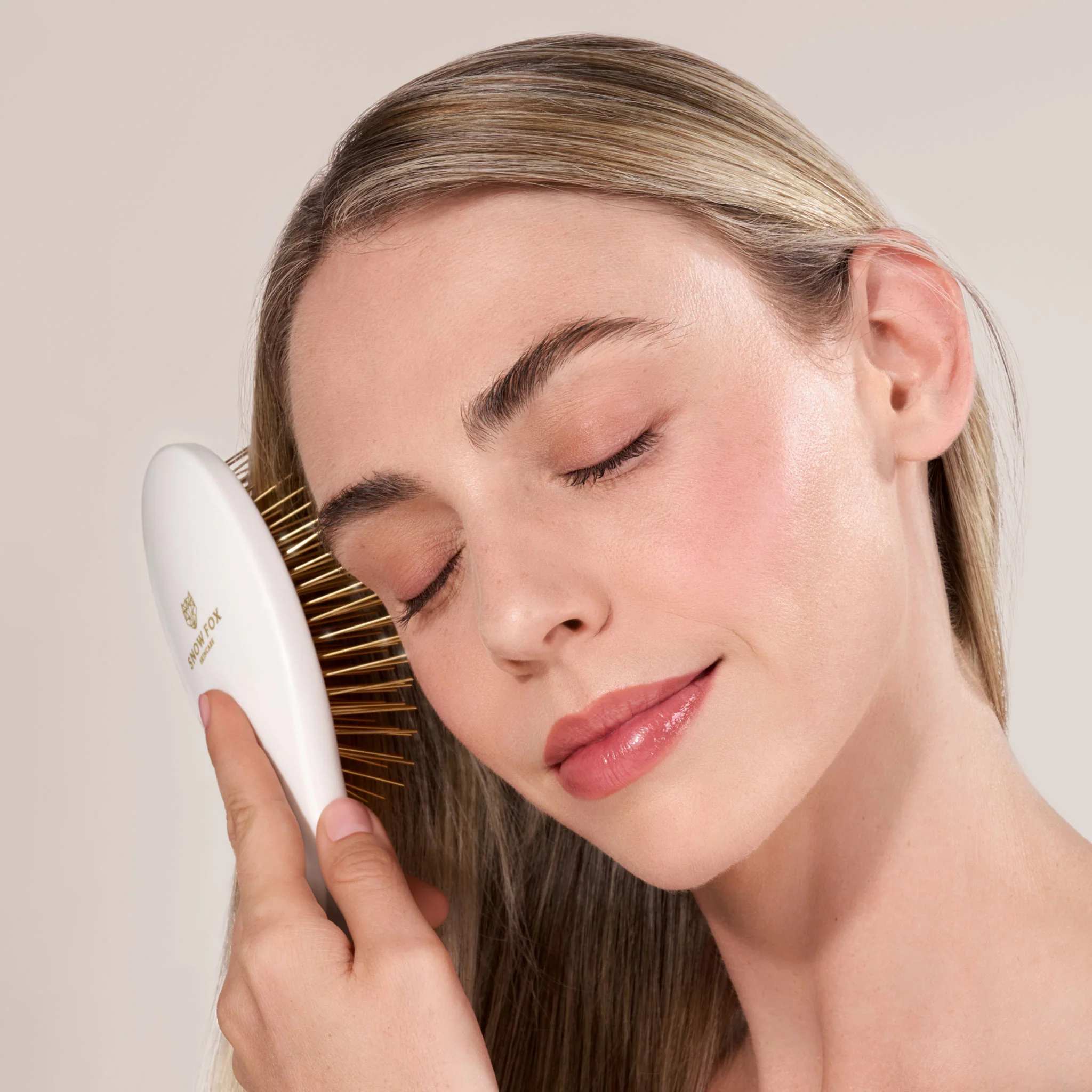 Stimulate acupressure points and promote healthy hair growth with our 24k gold-plated Gua Sha Hair & Scalp Brush.
